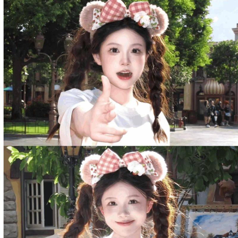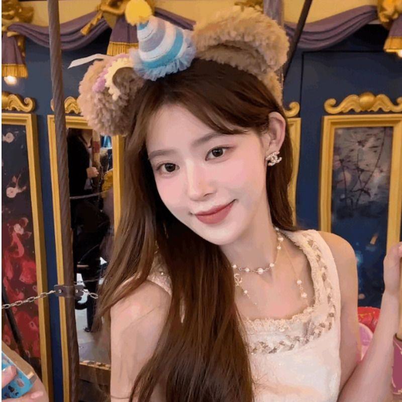 迪士尼毛绒发箍女2025年新款游乐园拍照发卡可爱甜美头箍洗脸头饰