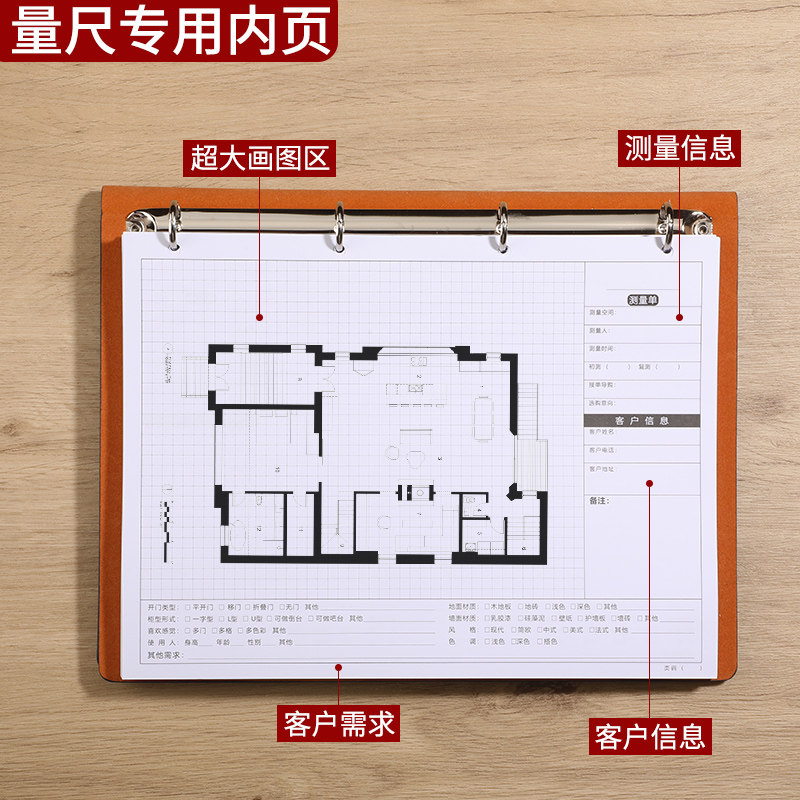 A4量房本活页设计师量尺本测量专用本笔记本子室内装修设计草图全屋定制手绘图方格网格加厚施工绘图本测量本