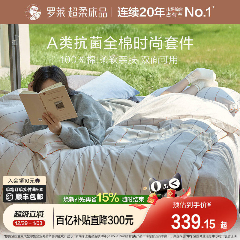 【断码清仓】罗莱家纺全棉套件纯棉床单被套1.8m双人宿舍四件套