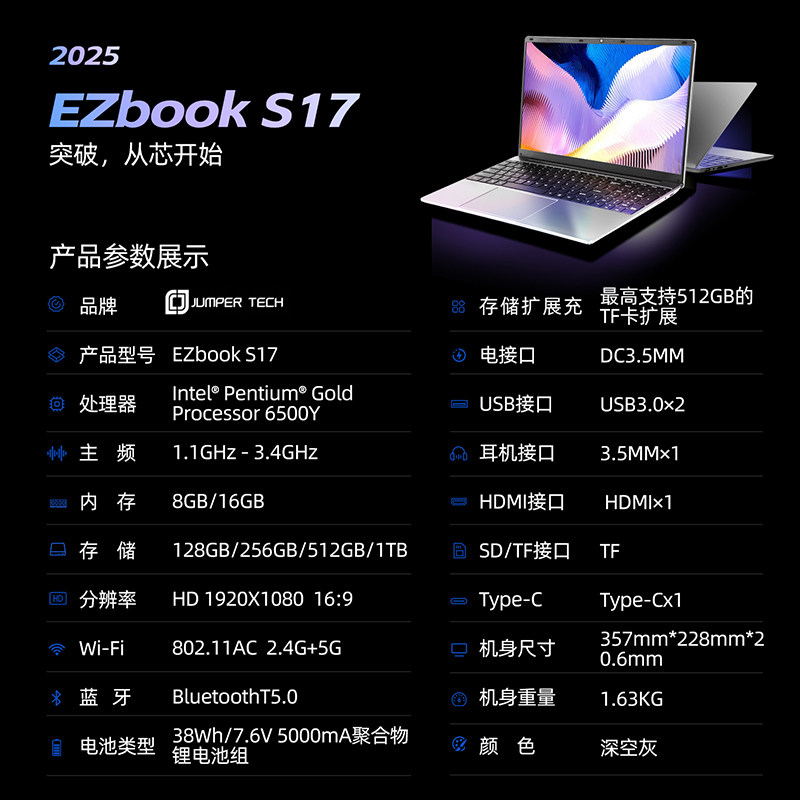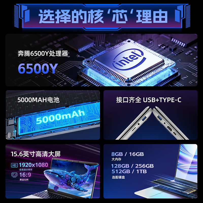padows中柏15.6英寸2025年新款S17奔腾6500Y笔记本电脑轻薄便携学生商务办公游戏官方旗舰正品超薄游戏上网本