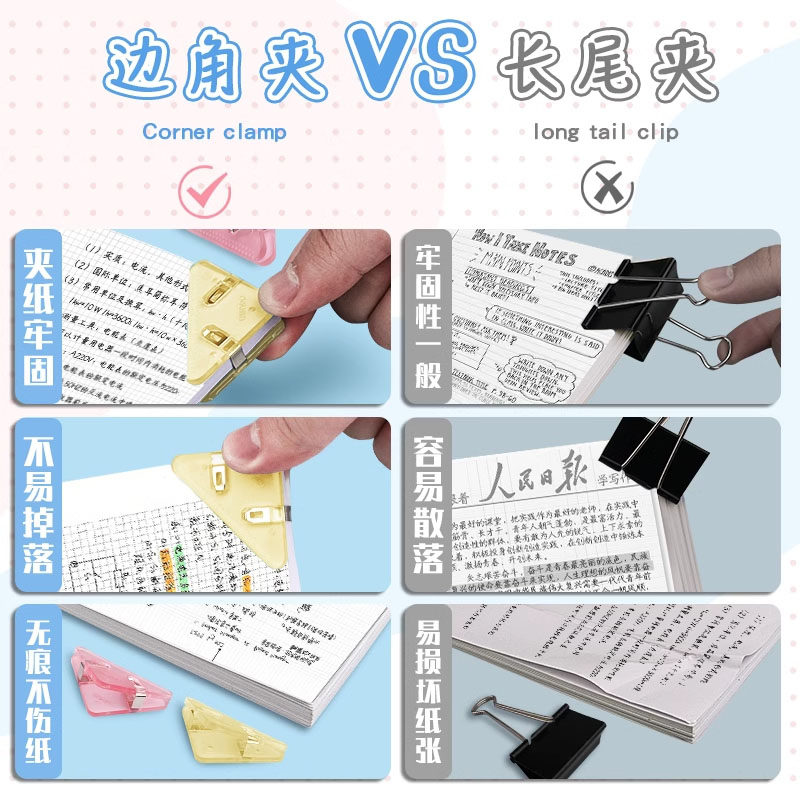 得力三角夹边角夹试卷夹三角文件夹小学生收纳整理资料夹子文具卷子夹书夹办公用品体检票据发票长尾夹