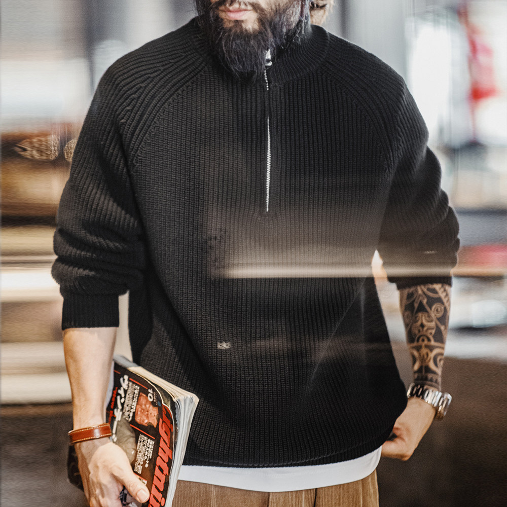 马登工装美式复古半拉链立领毛衣套头打底高领针织衫上衣男秋冬季