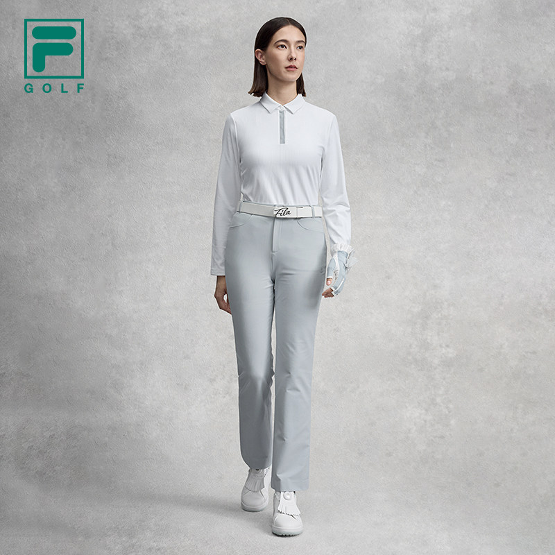 FILA 斐乐官方女士梭织长裤2025冬新款高尔夫运动简约基础微喇裤