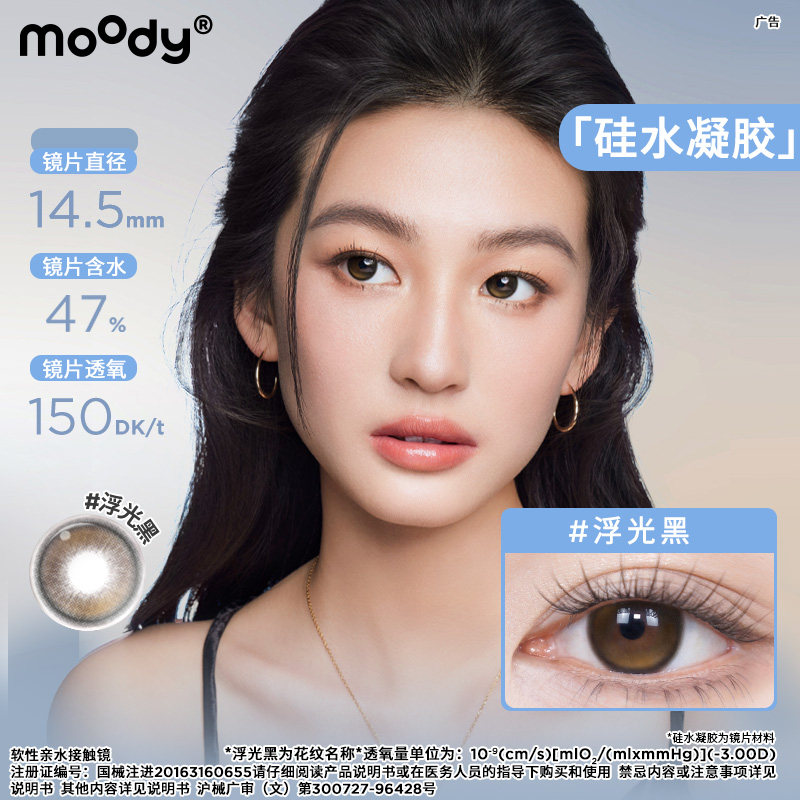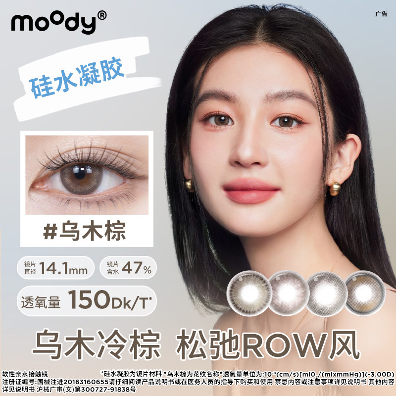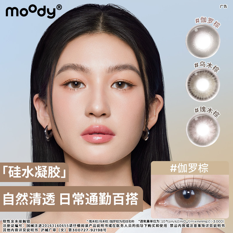 moody硅水凝胶美瞳日抛10片中小直径彩色隐形眼镜官方正品瑰木棕