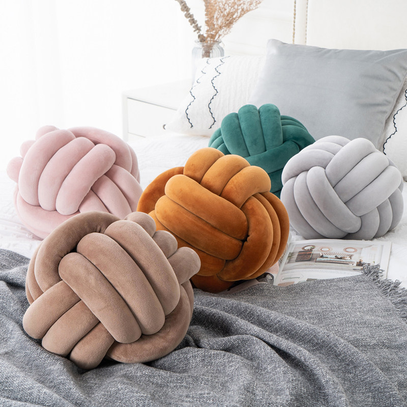 ins网红Knot打结抱枕沙发客厅床头靠垫绳结球编织线北欧装饰靠枕