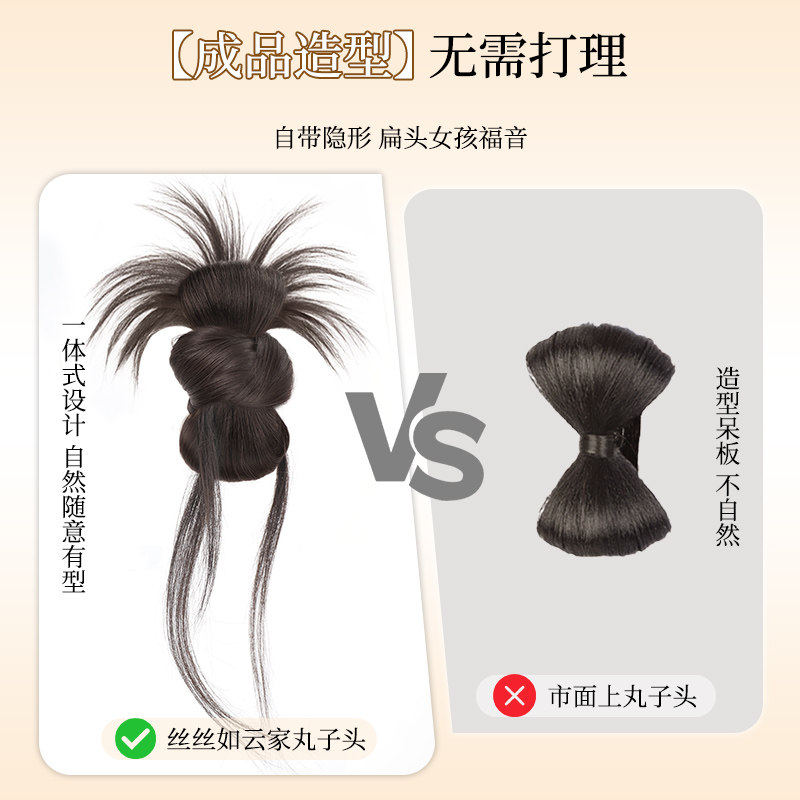 丸子头假发女仿真发抓夹发圈低扎千金鸡毛花苞头盘发神器蓬松发包
