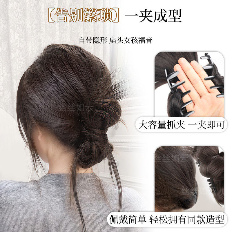 低扎丸子头假发鸡毛头抓夹盘发发包慵懒感造型头饰自然蓬松后脑勺