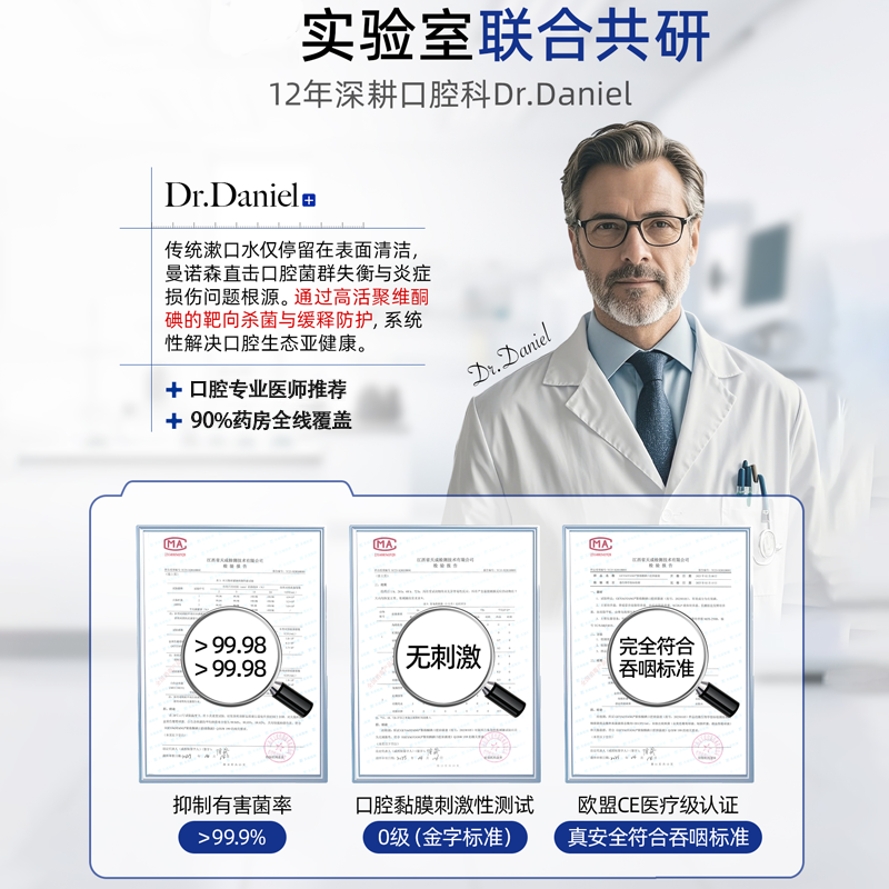 曼诺森聚维酮碘漱口水含漱口腔抑液菌碘伏漱口水杀菌除臭牙周炎