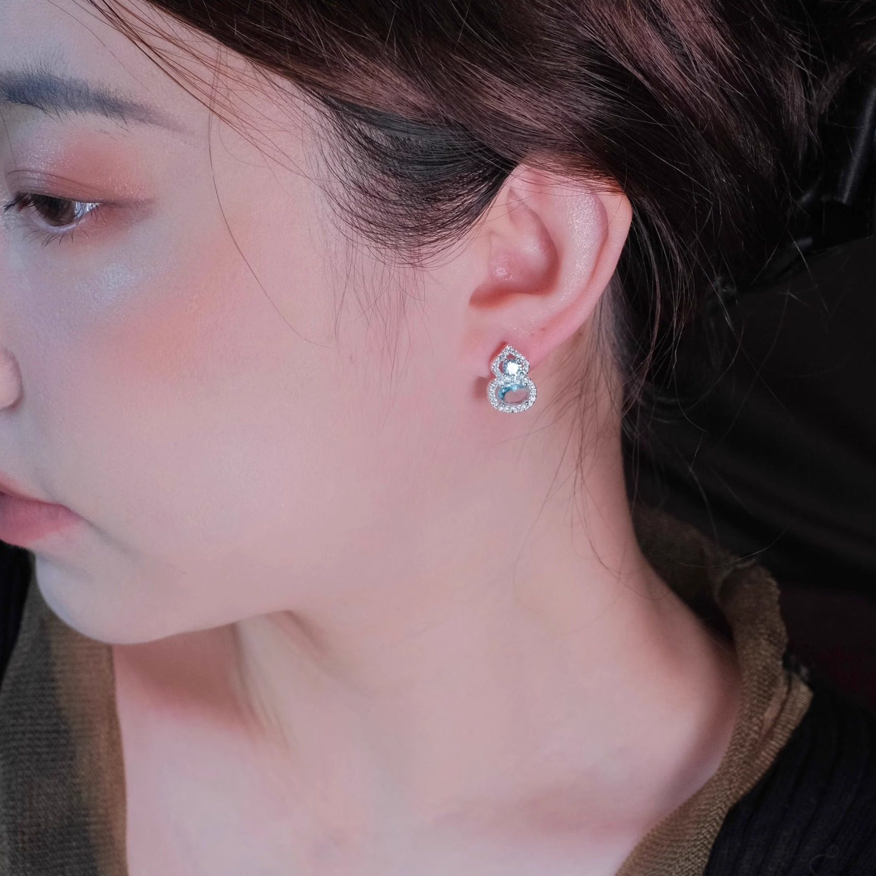 《海蓝葫芦》夏天精致高级感清冷感蓝色闪钻耳钉耳环耳夹无耳洞女
