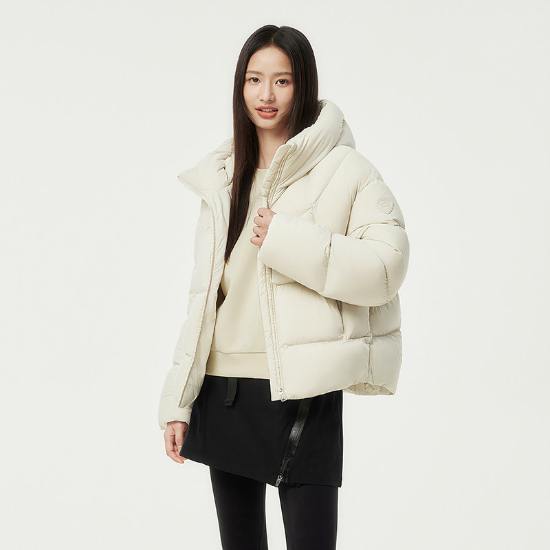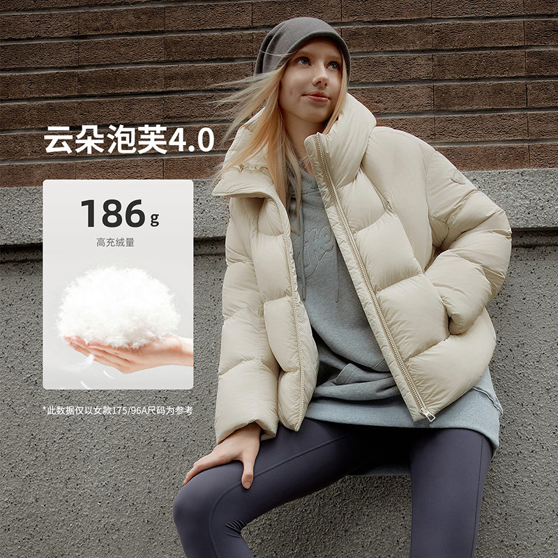 【鞠婧祎同款】鸭鸭2025年冬新款百搭短款女士纯色立领羽绒服外套