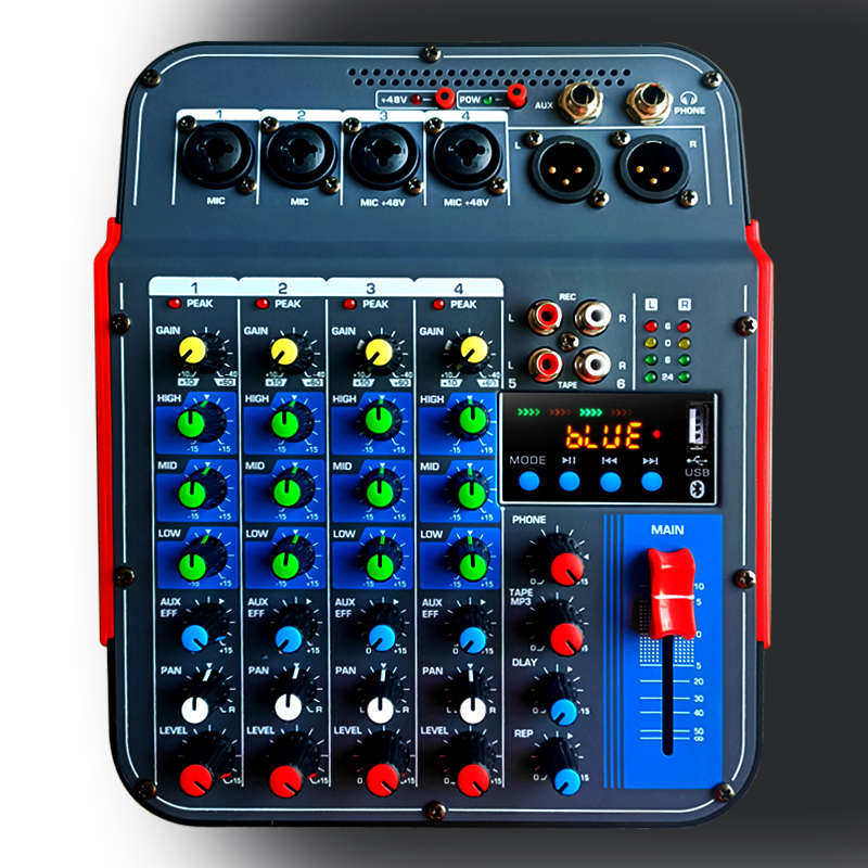4路专业迷你调音台KTV小型99DSP混响USB蓝牙家用直播5V供充电数字