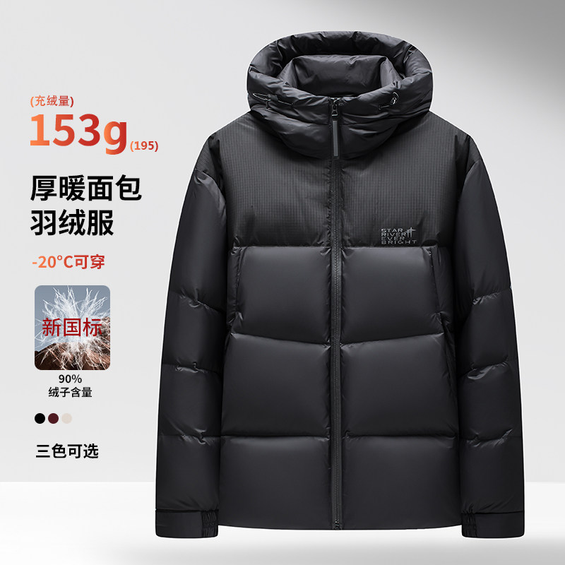 骆驼男装秋冬黑色加厚保暖鸭绒短款面包服男女同款防水羽绒服外套
