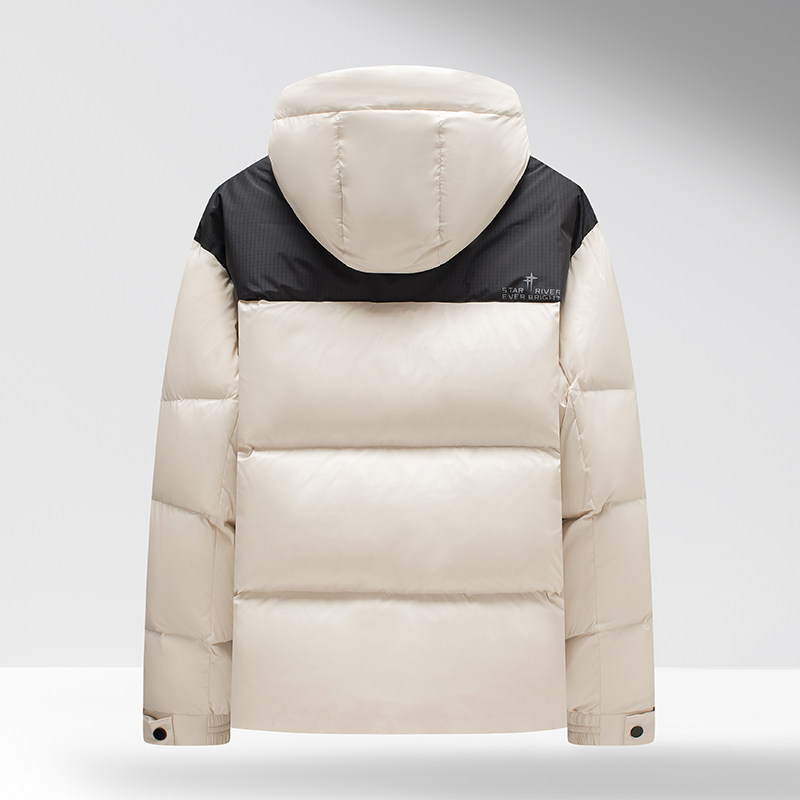 加厚羽绒服男冬季2025新款极寒连帽保暖高充绒潮牌拼色面包服外套