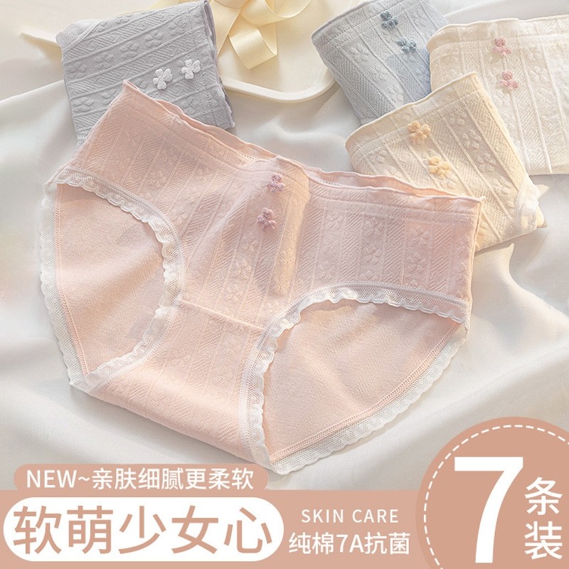 内裤女生纯棉抗菌100%全棉裆2023新款日系无痕透气女士中腰短裤
