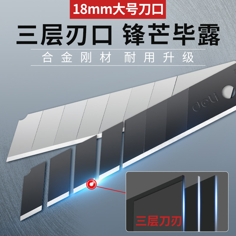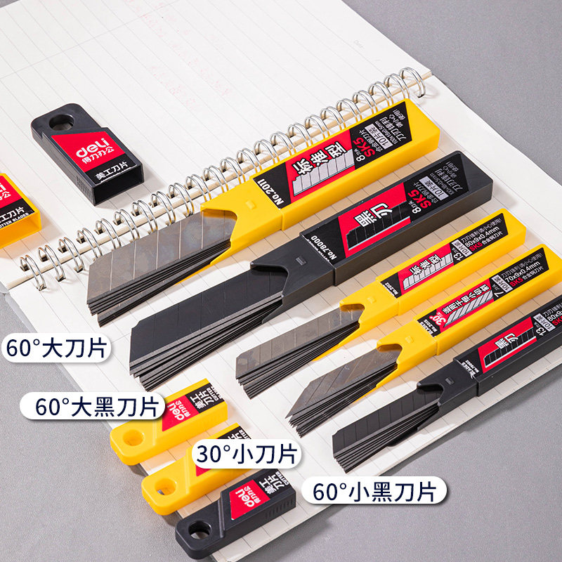 得力刀片美工刀壁纸刀黑色美工刀片18mm大号合金钢小号9mm壁纸墙纸裁纸工具拆件开箱汽车美容30度美工用刀片