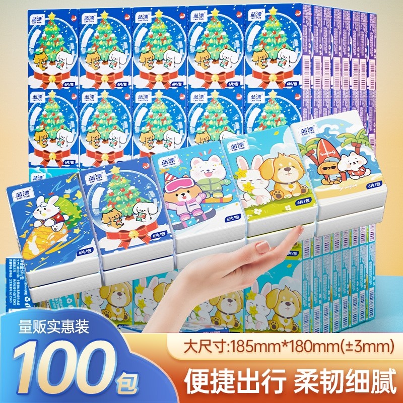 手帕纸100包迷你小包纸巾加厚面巾纸抽纸卫生纸厕纸便携式随身装