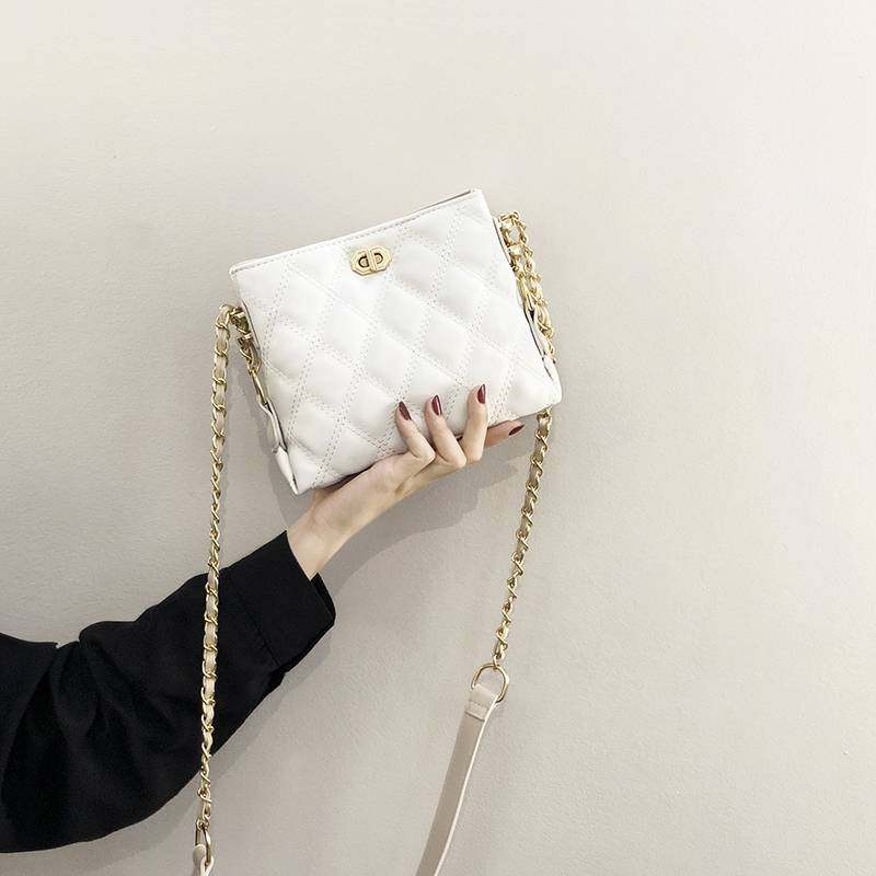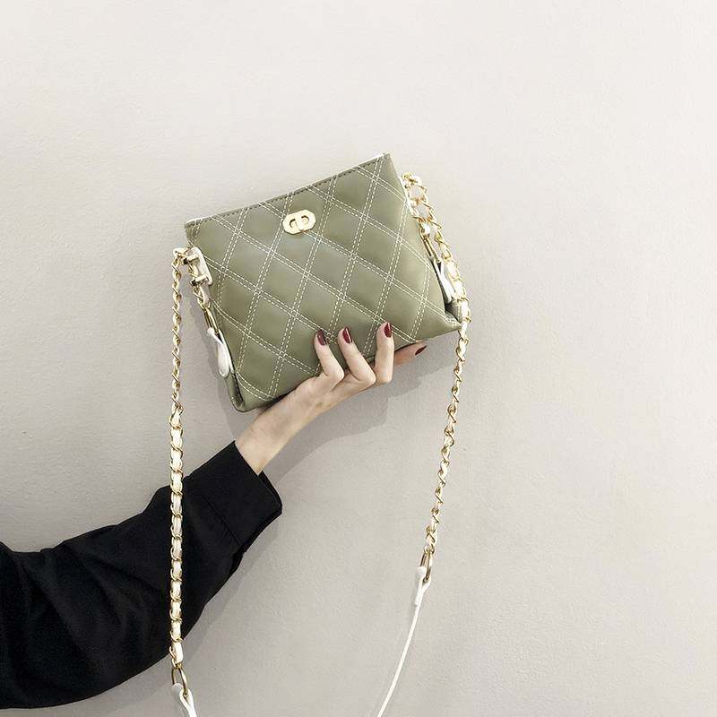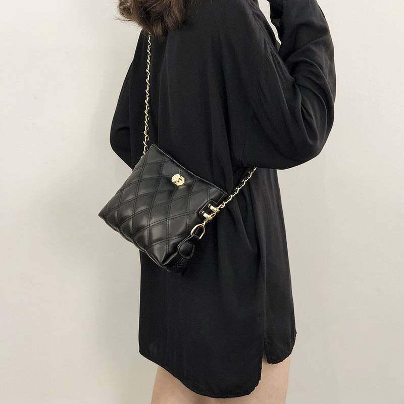 爱马女仕网红小包女新款春夏女包时尚百搭菱格链条斜挎包水桶包