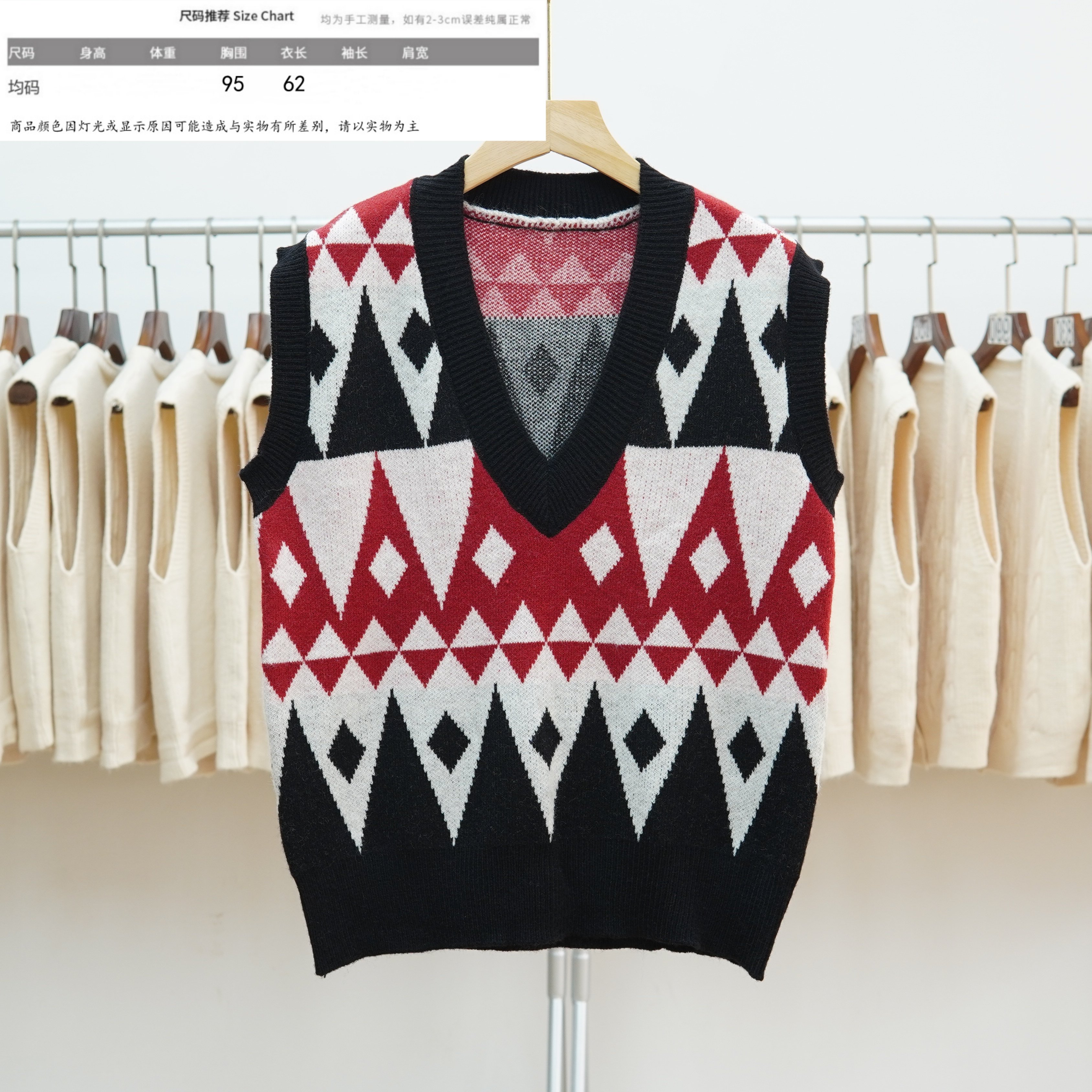 502秋冬新款V领毛衣马甲女复古加厚无袖背心针织马夹外穿上衣潮