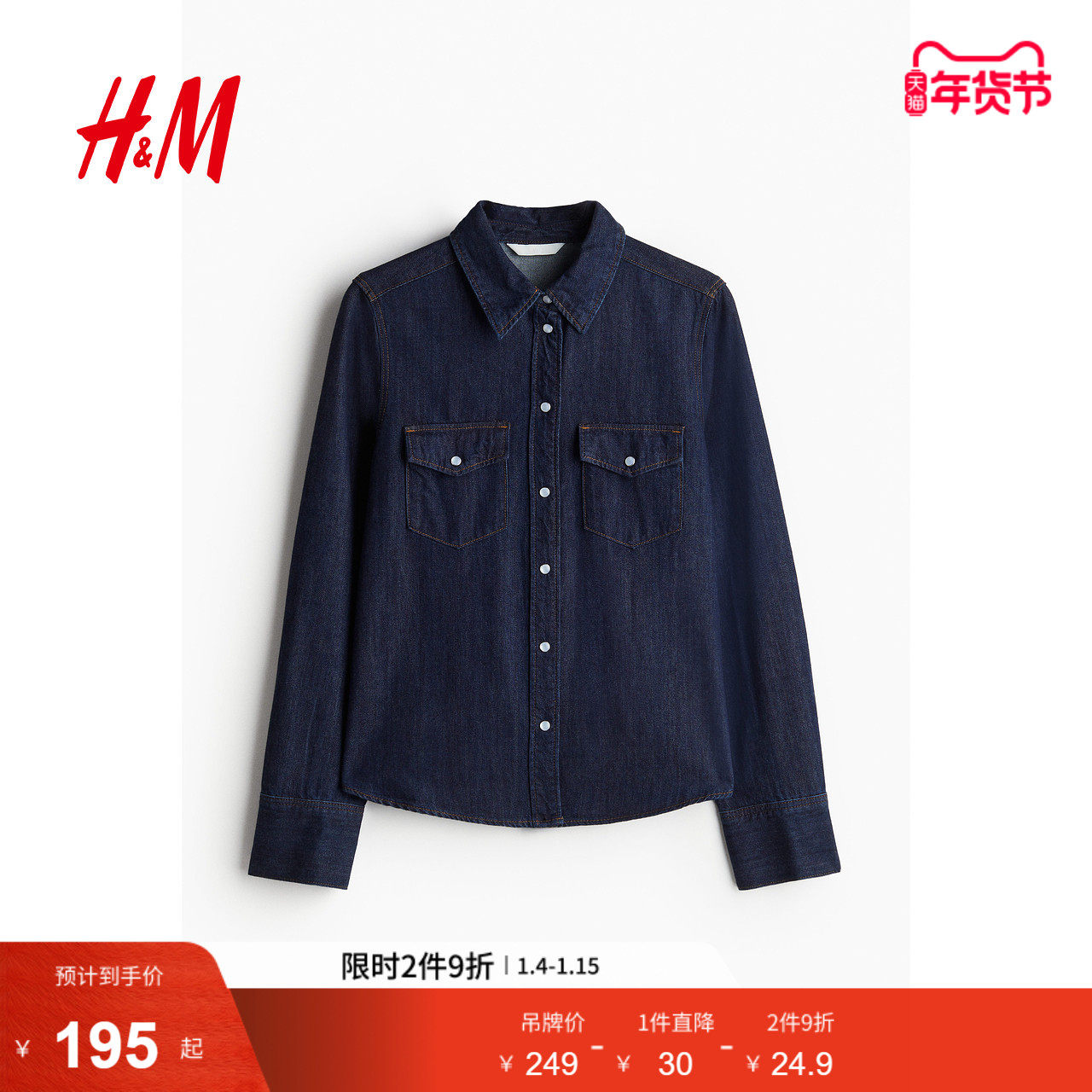 HM女装衬衫春季女士休闲时尚潮流复古牛仔衬衫1243135