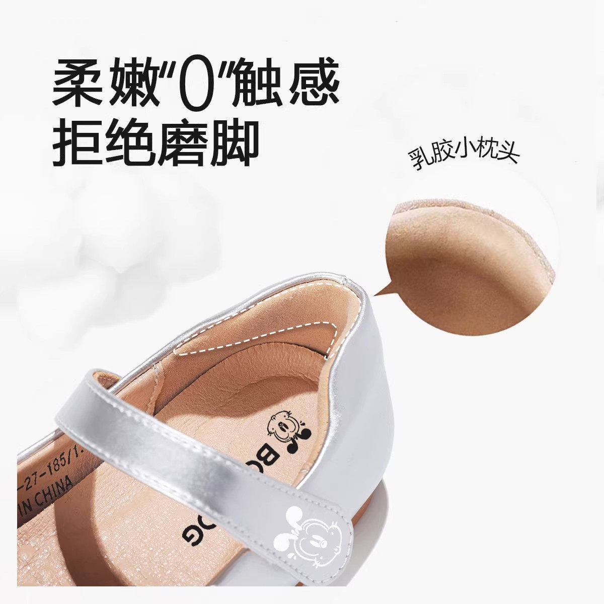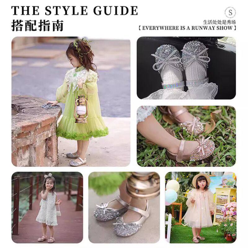 巴布豆女童水晶鞋配裙子公主鞋2026春季款小女孩单鞋软底皮鞋银色