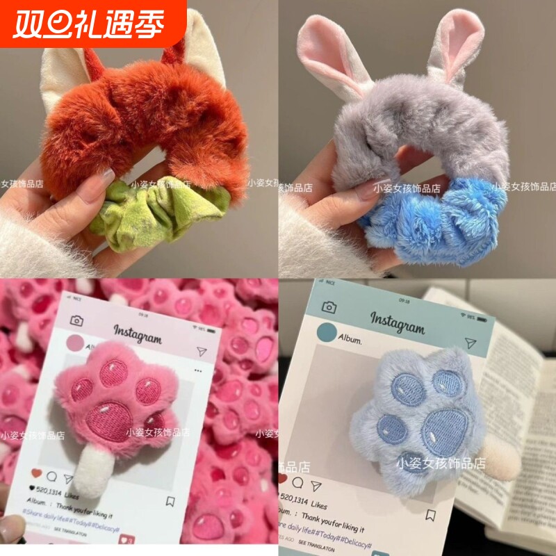 疯狂动物城可爱爪爪冰棍发夹卡通狐狸尼克朱迪毛绒发圈粉色猫爪夹