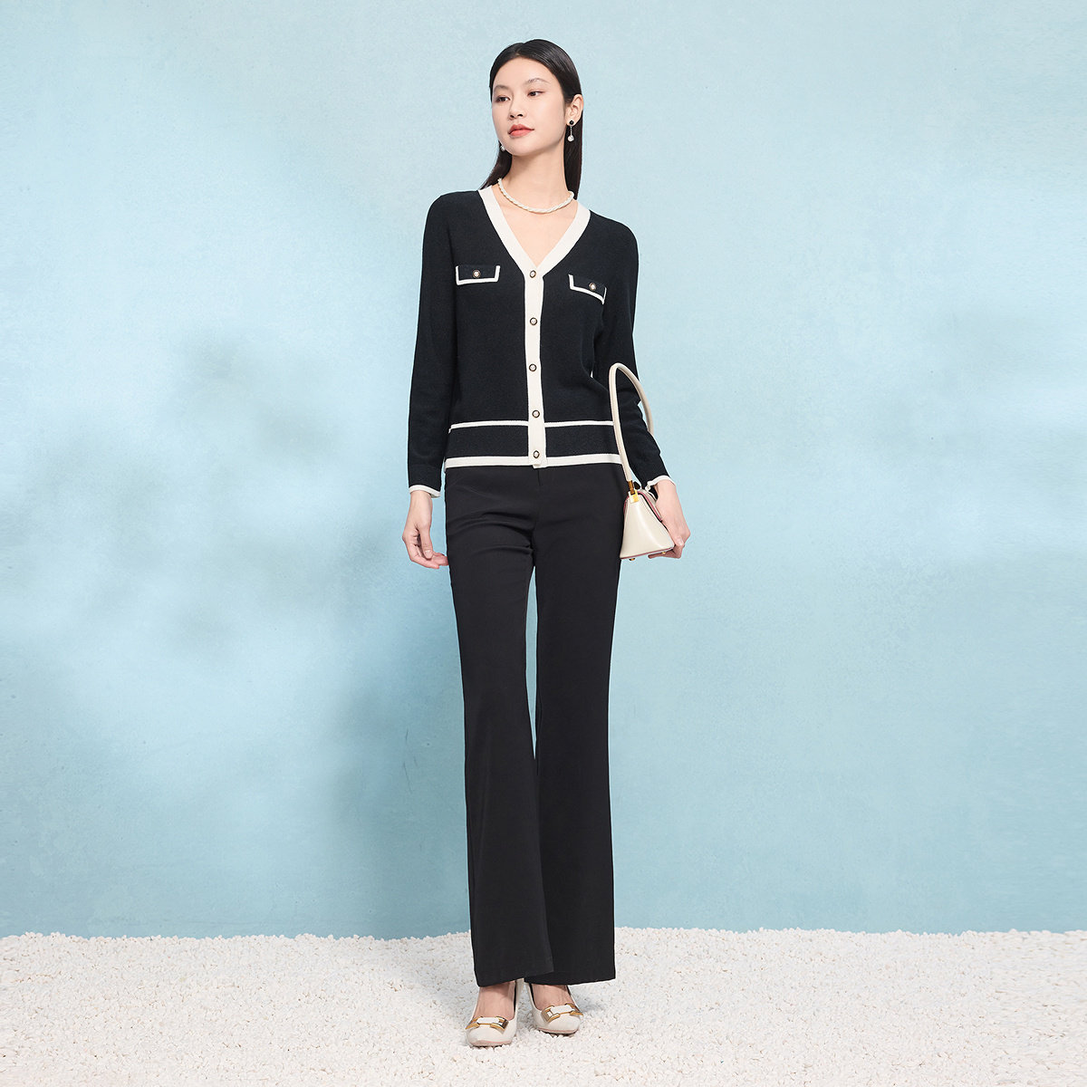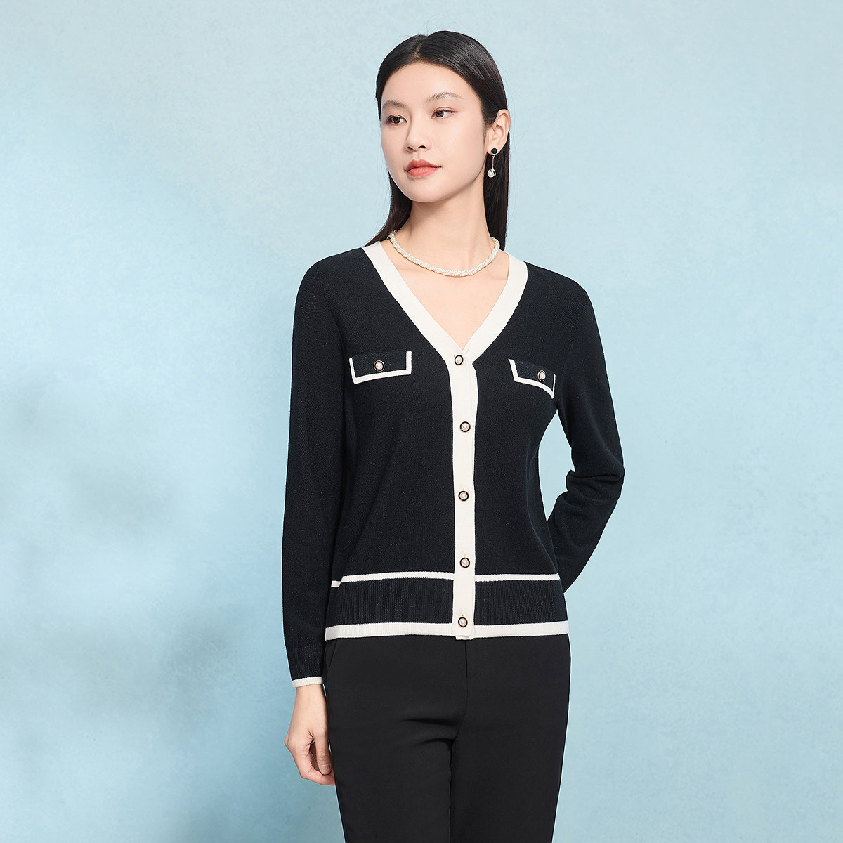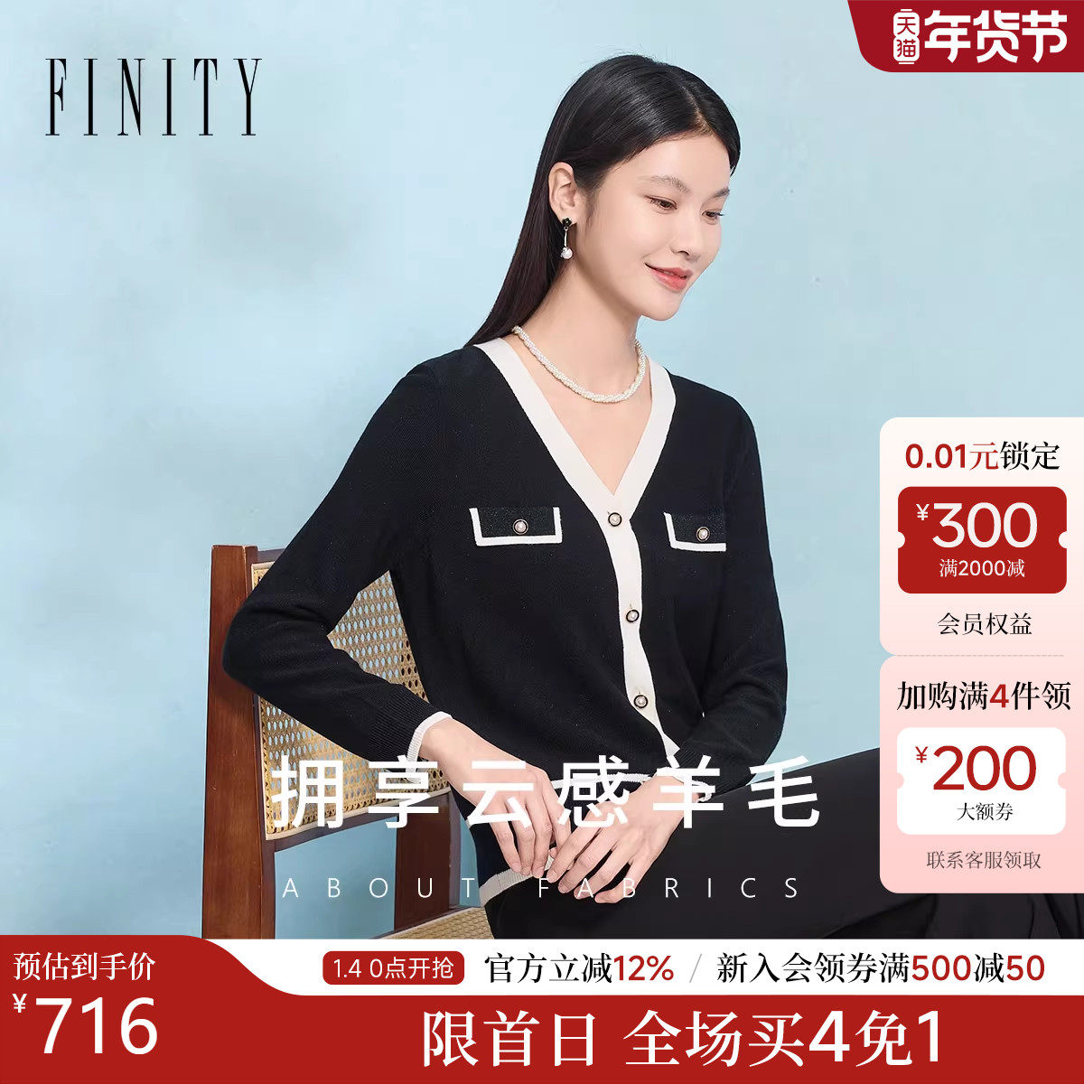 FINITY菲妮迪小香风针织衫2025秋新款简约气质羊毛V领针织上衣女