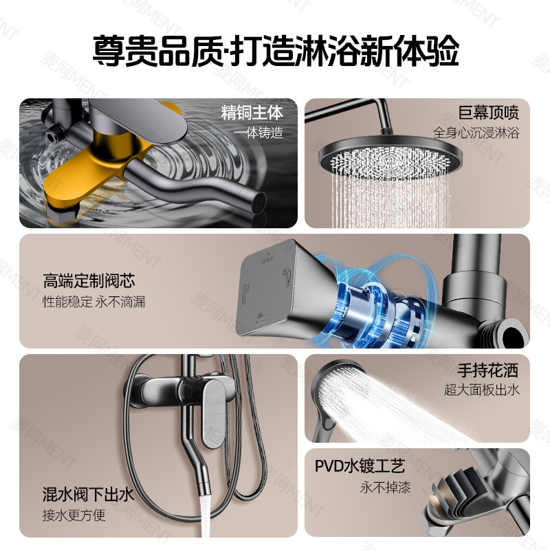 全铜淋浴花洒套装家用浴室喷头卫浴卫生间全套增压冷热淋浴器顶喷