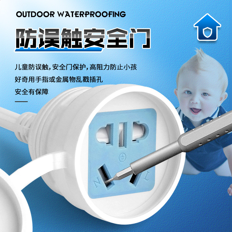 延长线插座三插头电源线10A户外防水电动车充电线插排防雨大功率