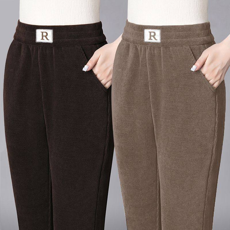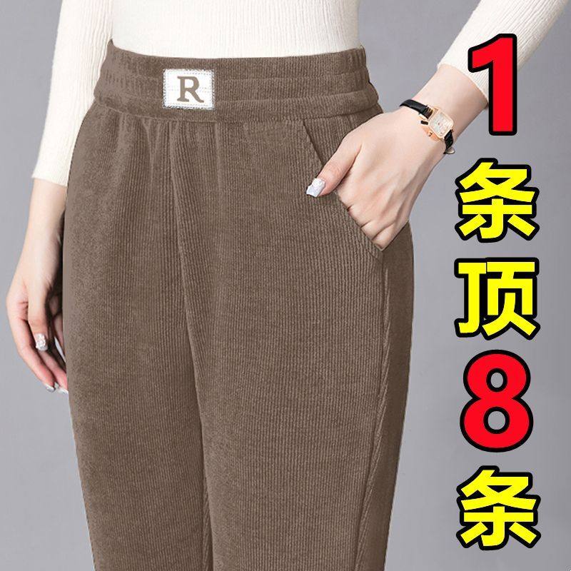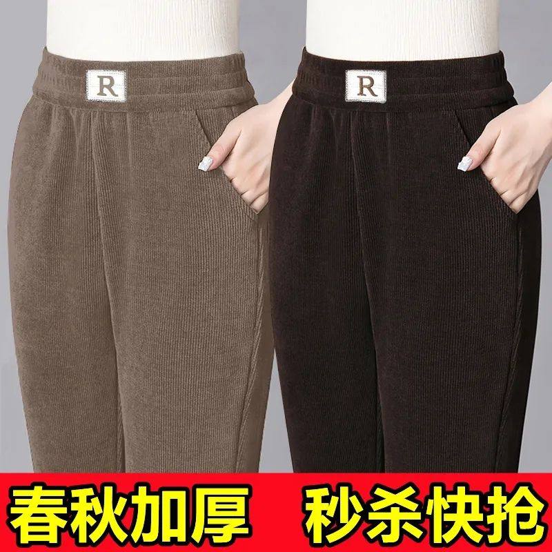 大码冬季加绒外穿休闲哈伦裤女高档显瘦中老年妈妈裤直筒保暖裤A