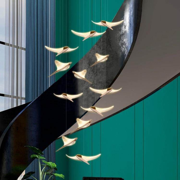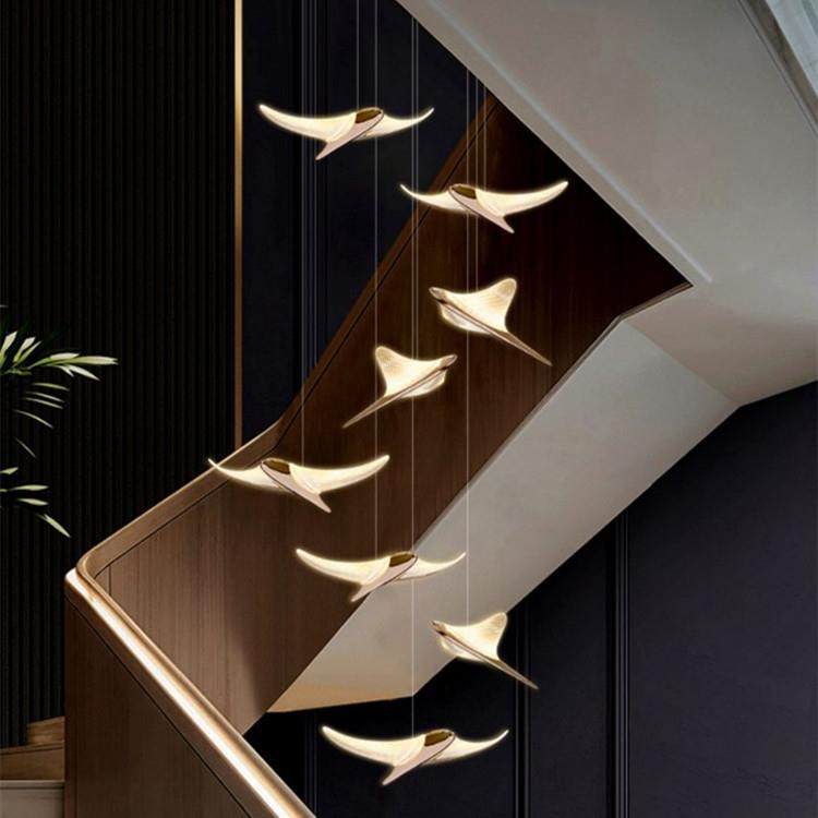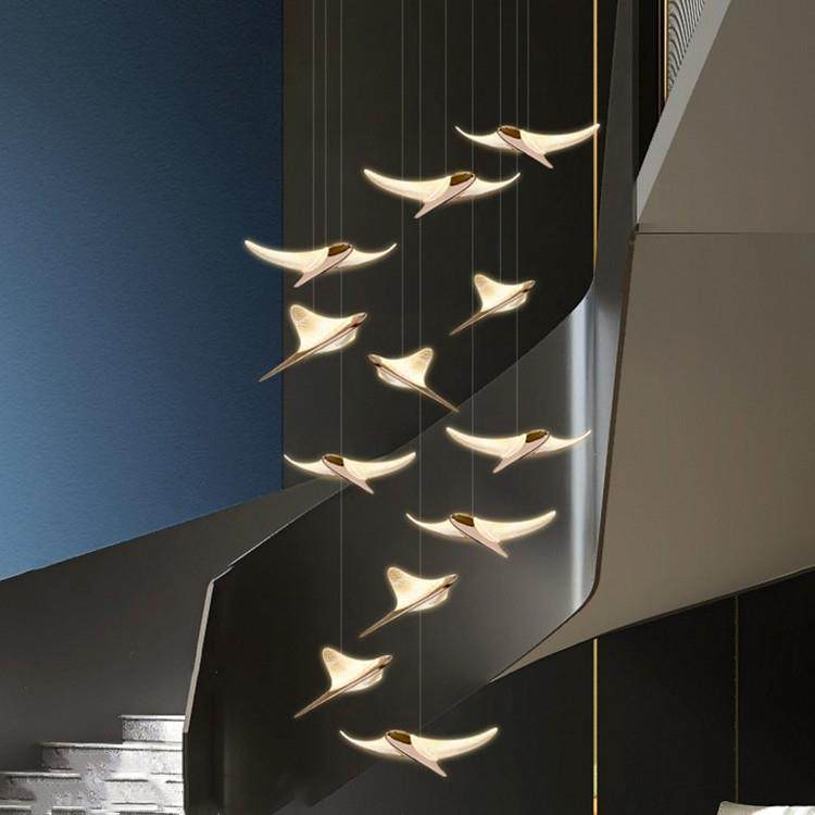 楼梯吊灯高档别墅复式楼创意个性飞鱼led灯现代简约家用大厅灯具