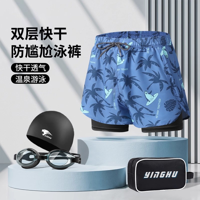 泳裤男士双层防尴尬2025新款沙滩裤男泳帽泳镜男款泡温泉游泳装备
