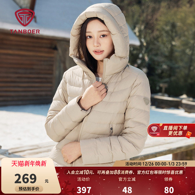【爆款】坦博尔轻薄羽绒服女款冬季时尚短款连帽休闲好看修身外套