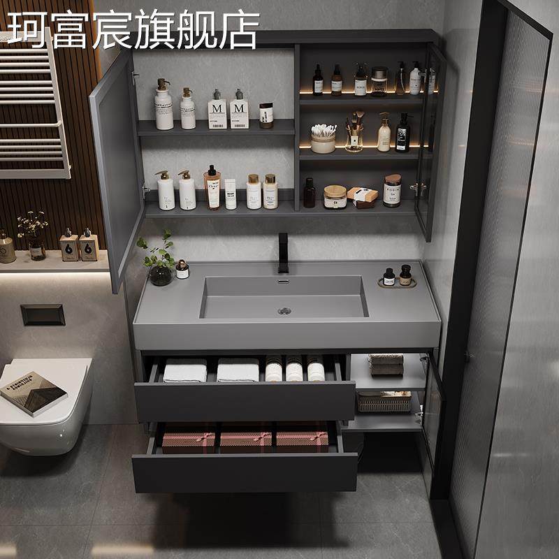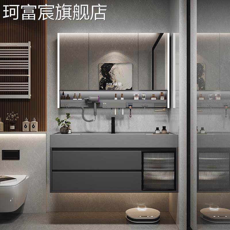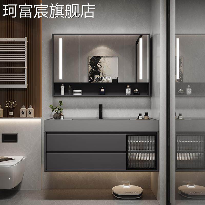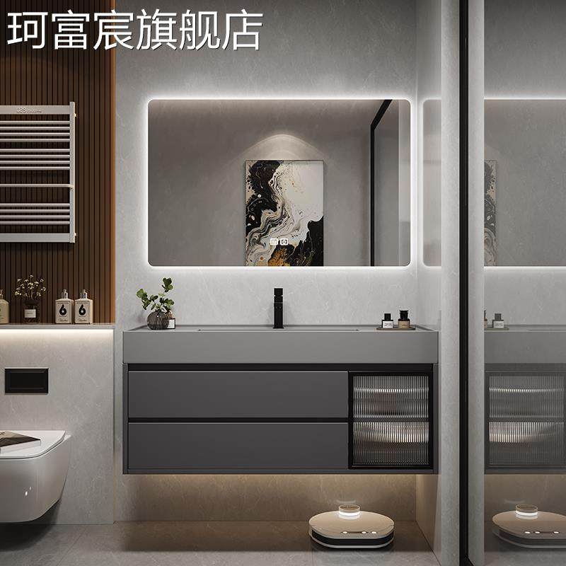 珂富宸轻奢浴室柜组合纳米岩石微晶石一体盆实木洗手洗脸盆卫生间洗漱台摆件饰品床笠拉车