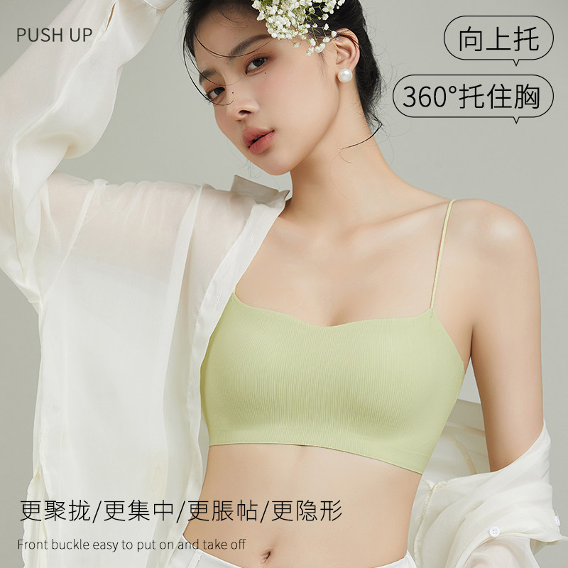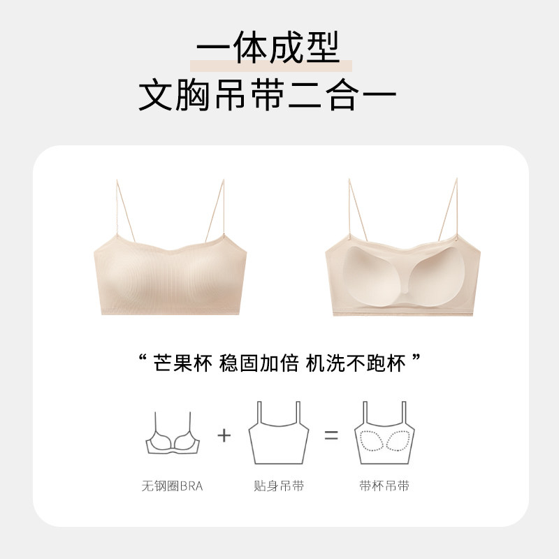 无痕美背抹胸内衣女小胸聚拢可外漏细肩带一体固定杯背心式文胸罩