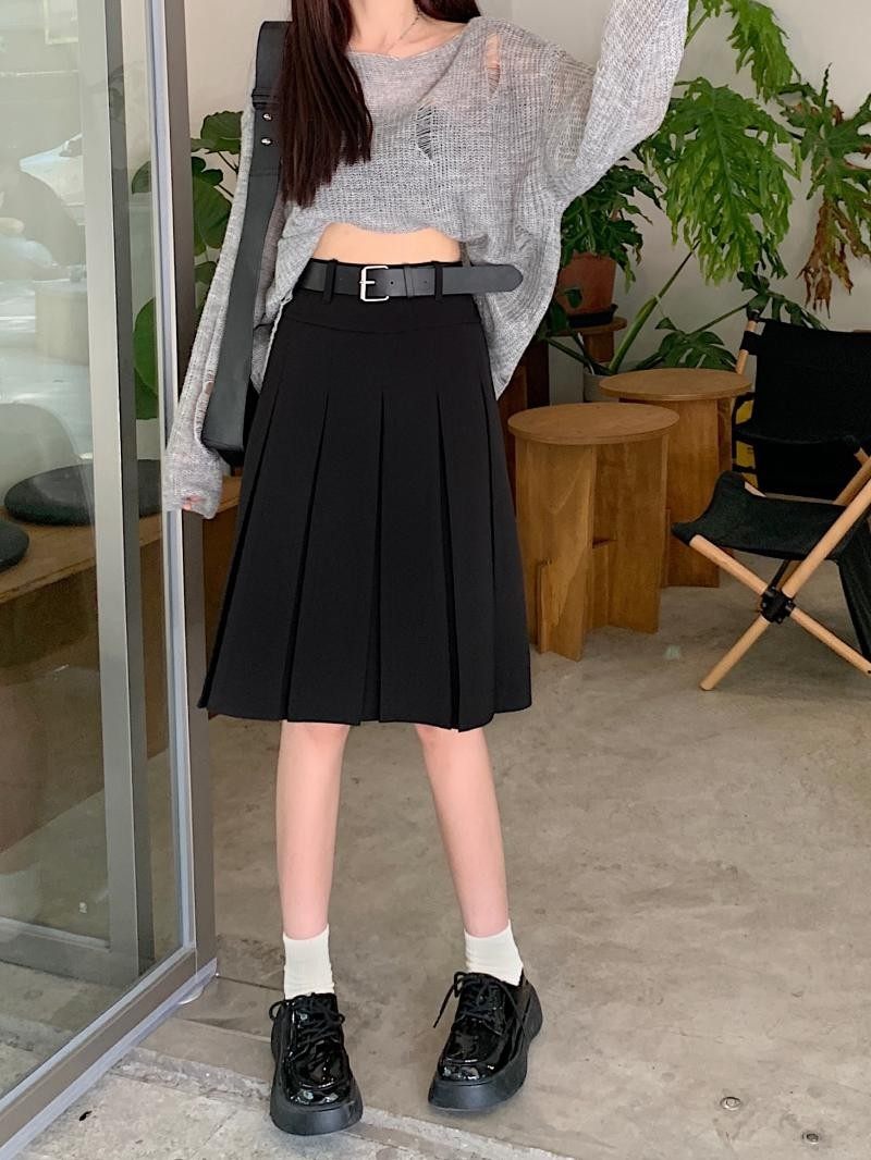 百褶裙女中裙大码学院风半身裙2023春夏遮胯a字裙高腰灰色西装裙
