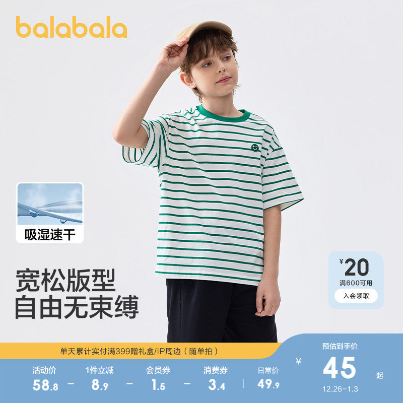 巴拉巴拉童装儿童短袖t恤2025新款男童女童春夏装吸湿速干亲子潮