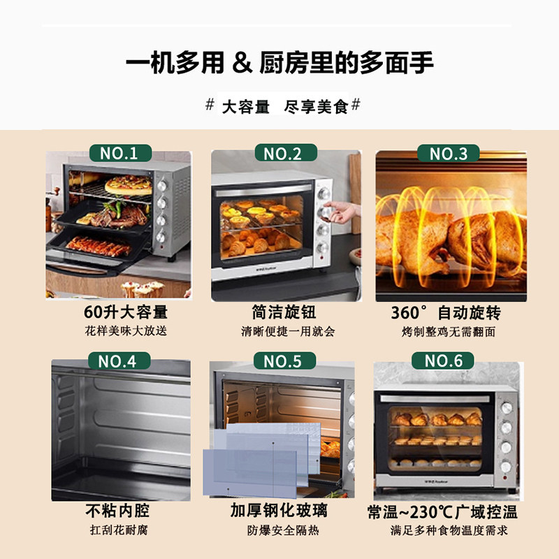 荣事达商用烤箱60升热风炉发酵家用烘焙蛋糕大容量电烤炉面包炉