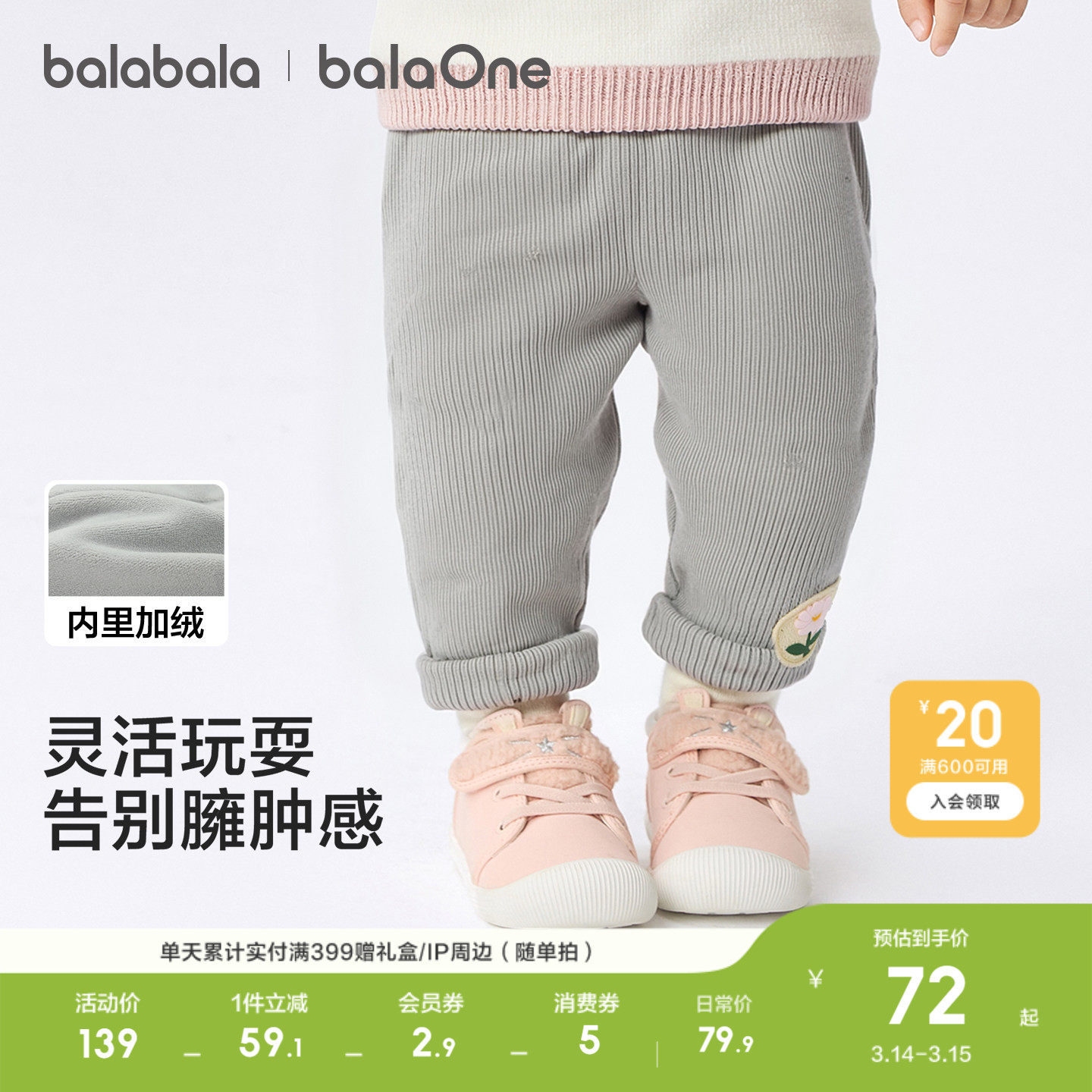 巴拉巴拉婴儿长裤加绒打底裤女童宝宝裤子秋冬装保暖2026休闲百搭