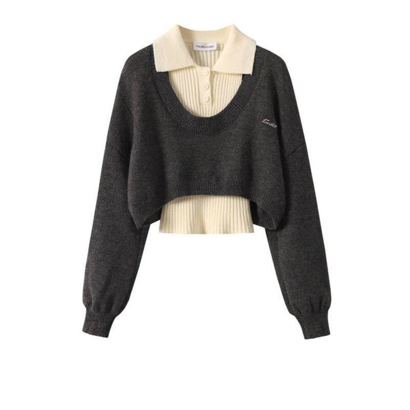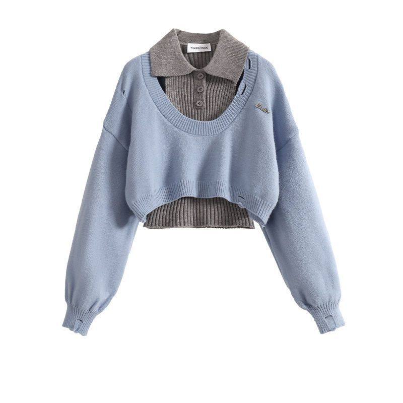 学院风毛衣女秋冬季韩剧穿搭两件套装针织衫大码内搭上衣