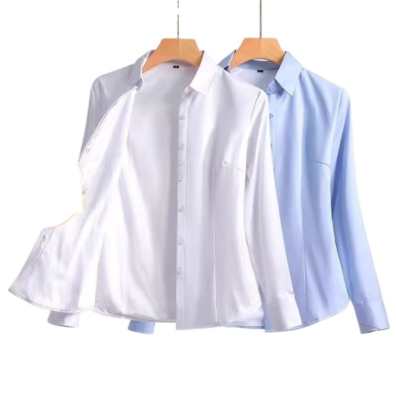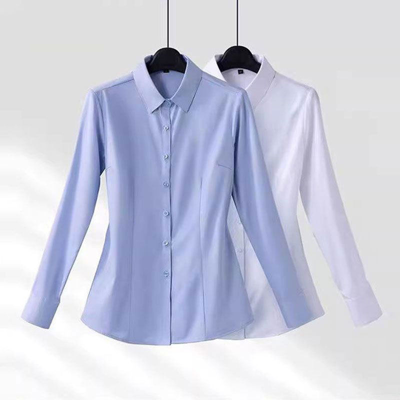 气质简约款长袖职业衬衫女秋冬新款加绒修身显瘦大码职业正装上衣