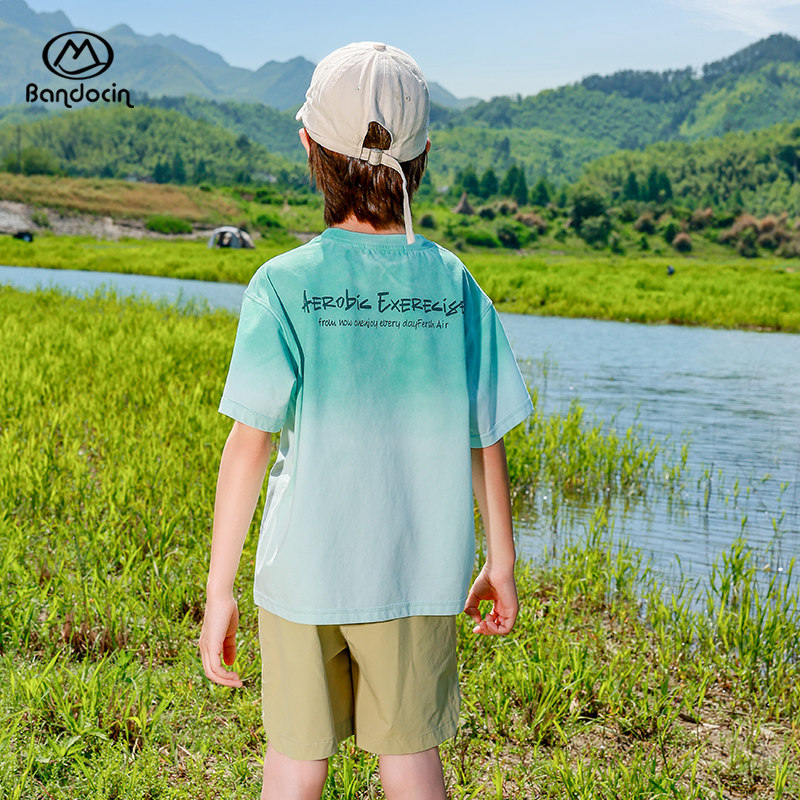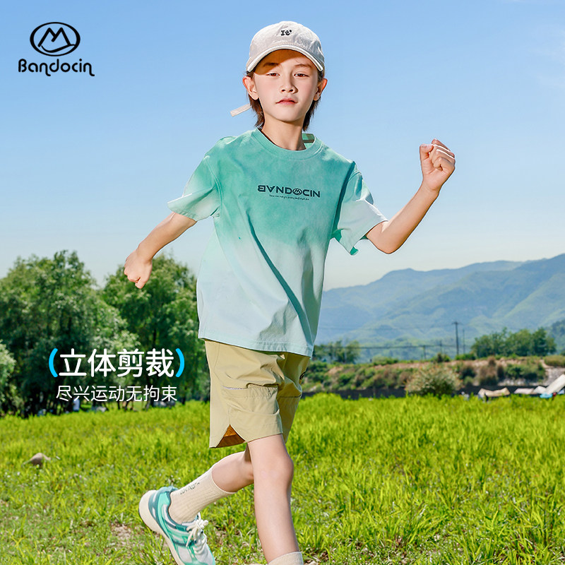 【冰感未来棉】半度闲男童渐变短袖t恤夏季薄款洋气儿童夏装凉感T