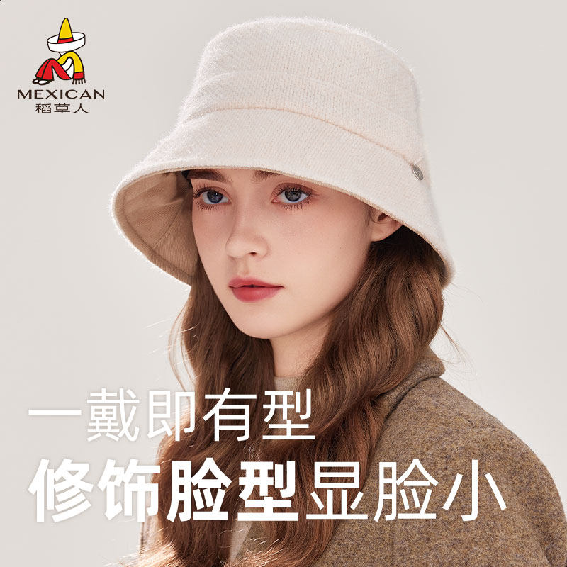 稻草人大头围渔夫帽女2025新款显脸小毛呢秋冬季素颜百搭气质盆帽