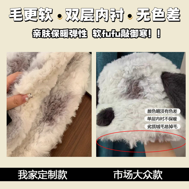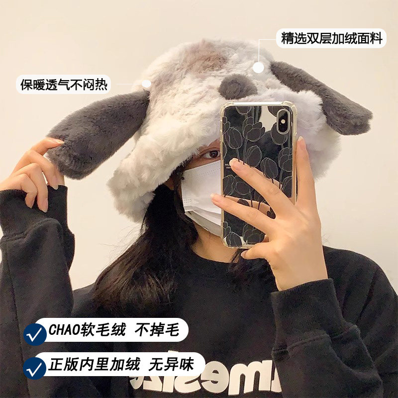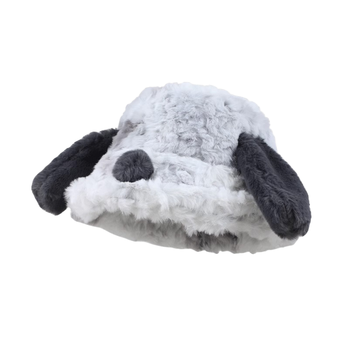渔夫帽女毛绒绒可爱小狗耳朵保暖盆帽秋冬水桶帽加绒灰色狗狗