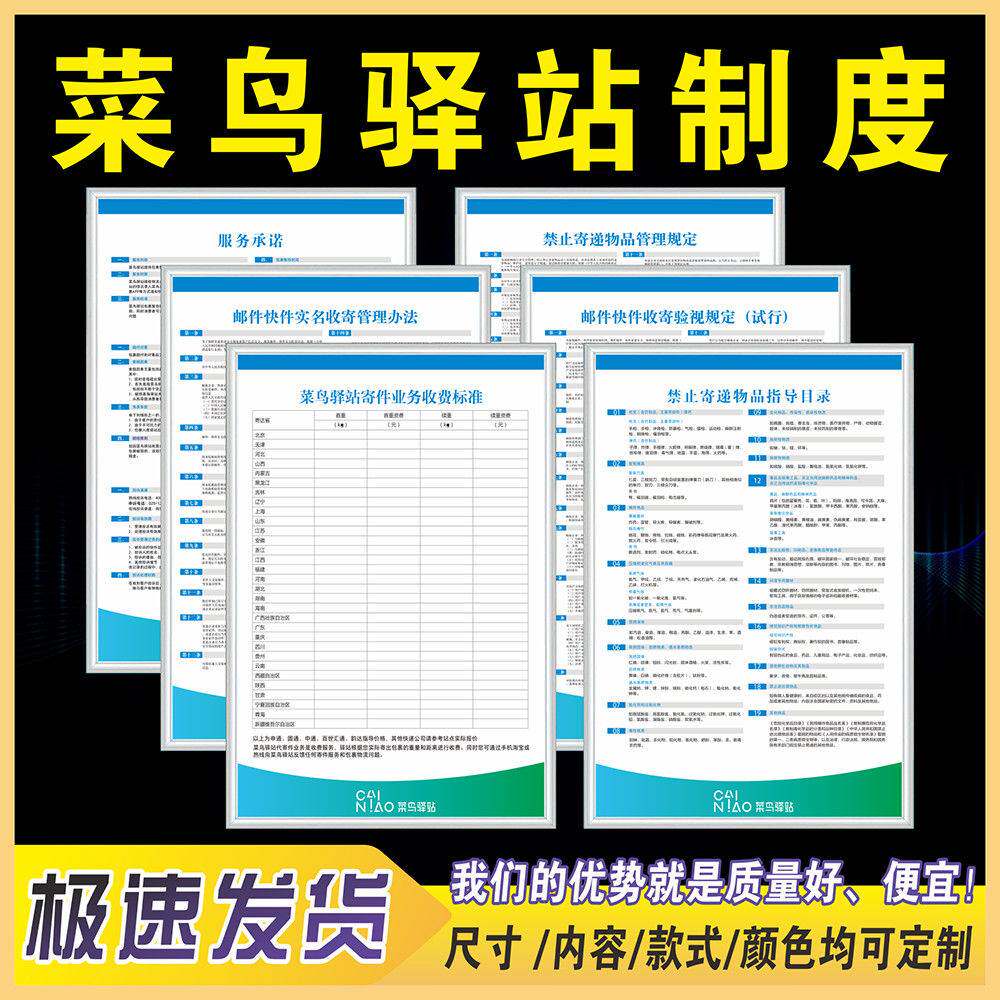 菜鸟驿站制度牌快递禁寄品管理菜鸟驿站服务承诺寄件制度牌可定制