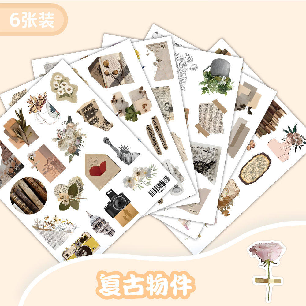 800贴复古文艺贴纸创意报纸粉色小物件怀旧贴纸消防车diy防水贴画