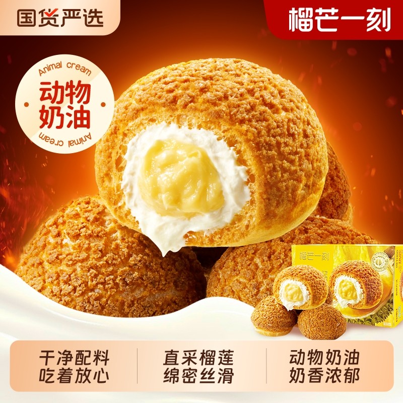 榴芒一刻榴莲泡芙休闲零食小吃冰淇淋动物奶油泡芙球甜品圣诞礼物