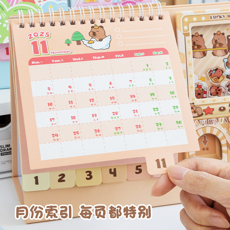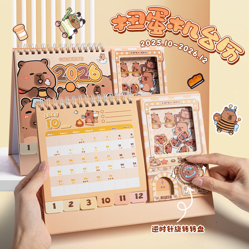 2026年卡皮巴拉扭蛋机台历简约办公室桌面摆件日历月历台历手账本记事本笔记本备忘录创意ins风办公计划本