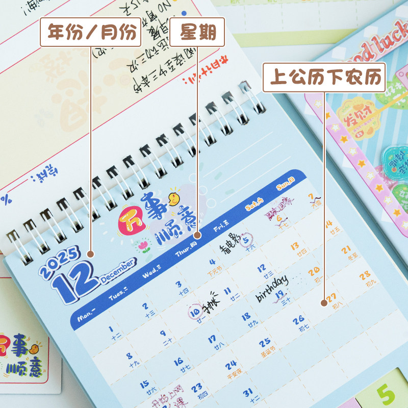 季左2026年韩式台历日历马年新款定制订制小卡月历桌面摆件网红卡通高颜值办公台历卡通可爱