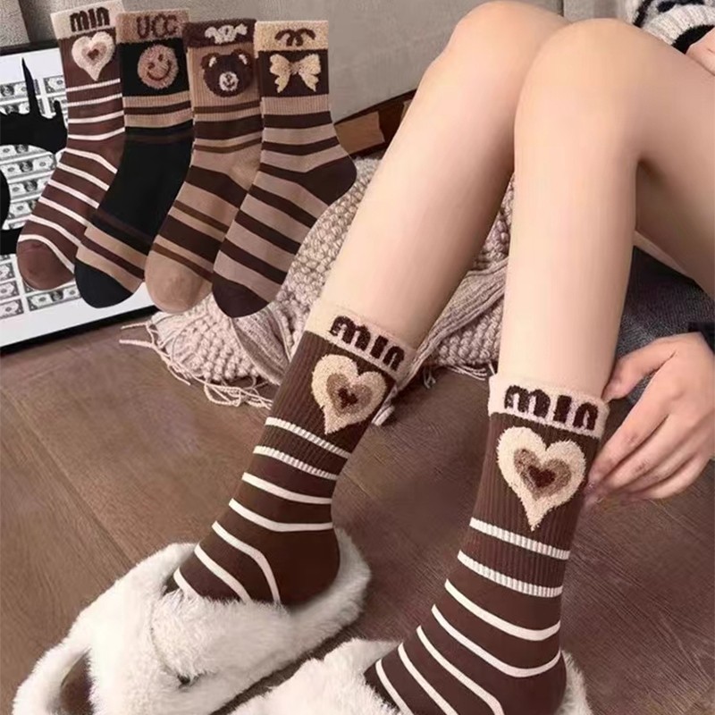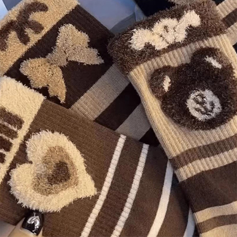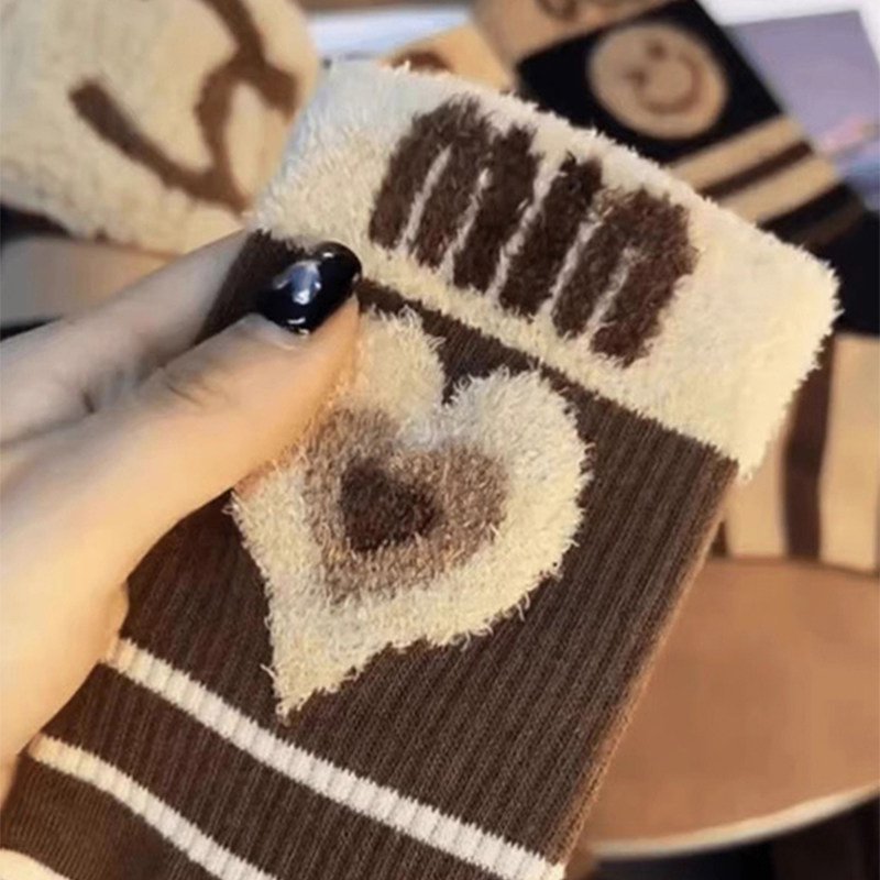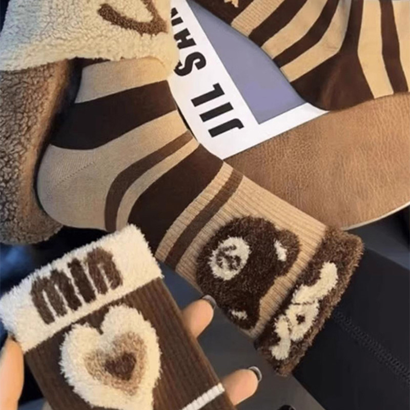 袜子女秋冬季中筒袜绒毛袜2025爆款美拉德防臭冬天加厚女款保暖袜