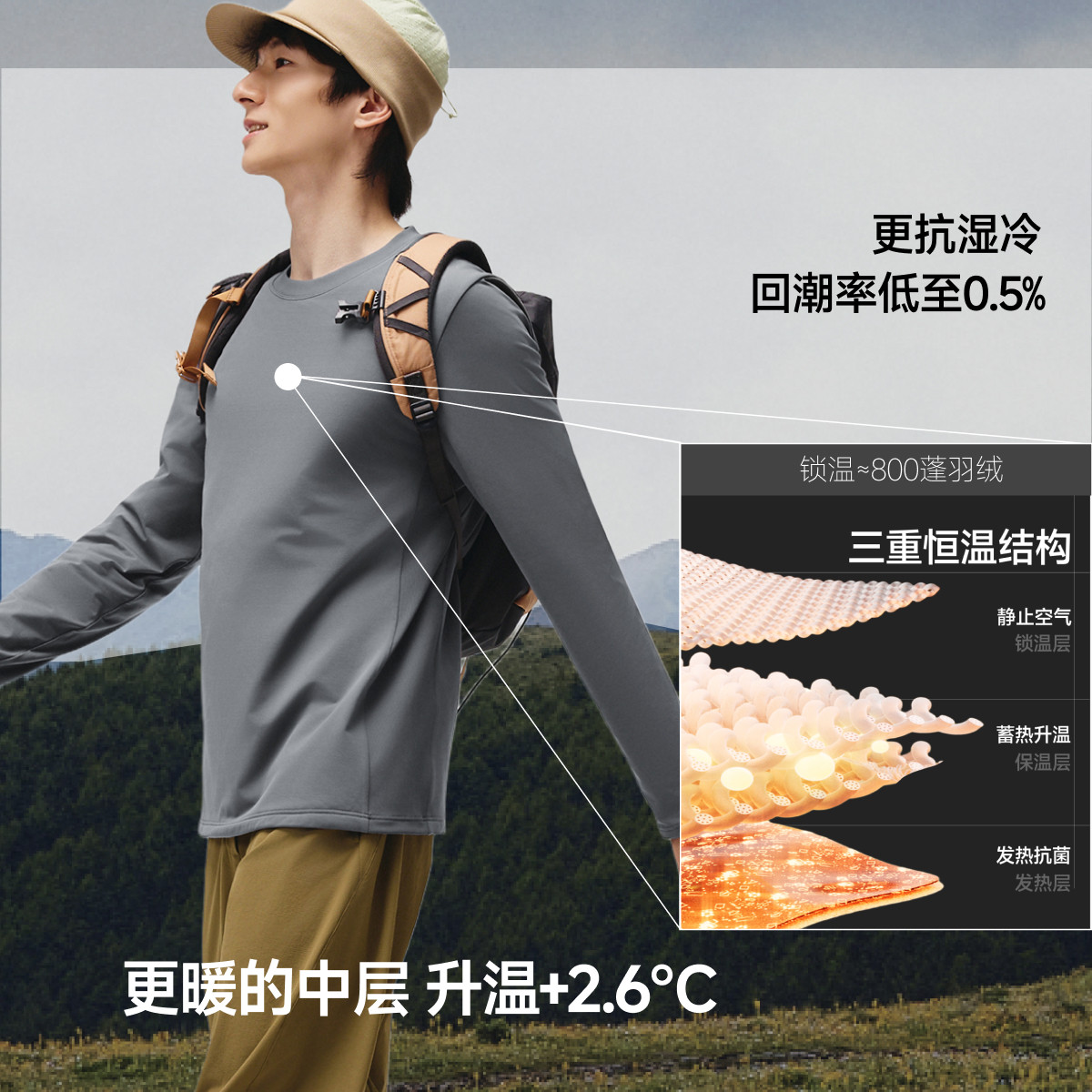 蕉下男士气绒保暖T恤保暖防汗渍保暖加绒长袖上衣秋百搭休闲卫衣